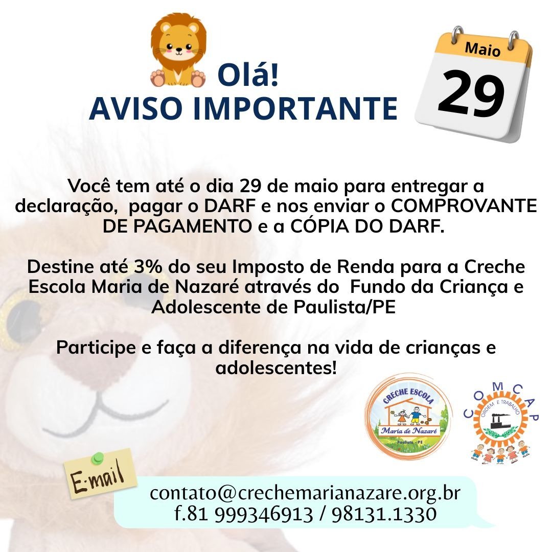 Cuidar das crianças que nos foram confiadas é uma tarefa que requer a contribuição de muitas pessoas. Por isso, a Creche Escola Maria de Nazaré conta com o apoio de instituições e entidades governamentais, colaboradores, voluntários, padrinhos e madrinhas afetivos, empresas patrocinadoras e da comunidade em geral.